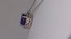 14 karat white gold pendant set with one 3.62 carats oval tanzanite, violet blue exceptional color, 10X LOUPE CLEAN clarity, cut grade very good, measuring 8 mm wide, 10 mm long, 6 mm deep. The proportions of the tanzanite are as follows: total depth 75%, table width 60%. The overall quality rating of this stone is 912 out of 1000. Tanzanite is enhanced by heating. Accenting the tanzanite are 22 round brilliant diamonds with F-G color and Vs clarity having a total weight of .15 carats. The cable chain is 18 inches long.