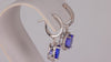 14k white gold tanzanite pierced earrings with hinged lever backs, with two blue violet exceptional (40%blue/60%violet) color, GIA Type I Clarity VS1, oval tanzanites. The tanzanites have a total weight of 4.91 carats, measure 7 mm wide by 9 mm long, and are 4 prong set. In addition, there are sixty-four prong set round brilliant cut natural diamonds, F-G color, VS2-SI1 clarity, with a total weight of .51 carat. The earrings weigh 5.69 grams. Tanzanites are color enhanced by heating.