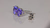 14k white gold tanzanite stud pierced earrings with friction backs, with two bVE (30%blue/70%violet) color, GIA Type I Clarity VS1, round brilliant cut tanzanites. The tanzanites have a total weight of 2.74 carats, measure 6.7 mm wide by 6.8 mm long, and are 4 prong set. Tanzanites are color enhanced by heating.