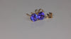 14k yellow gold tanzanite stud pierced earrings with friction backs, with two violet blue vivid (40%violet/60%blue) color, GIA Type I Clarity VS1, round brilliant cut tanzanites. The tanzanites have a total weight of 1.10 carats, measure 5.0 mm wide by 5.1 mm long, and are 4 prong set. Tanzanites are color enhanced by heating.
