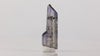 Beautiful natural unheated tanzanite crystal showing soft violet to blue tones with subtle color zoning throughout. The elongated crystal has a clean, elegant shape with good transparency, allowing light to pass through and highlight its natural internal features. The smaller secondary crystal growth adds extra interest and character to the piece.