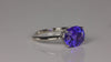 Platinum tanzanite ring, with one blue violet exceptional (35%blue/65%violet) color, GIA Type I Clarity VS1, oval tanzanite. The tanzanite weighs 5.54 carats, measures 10 mm wide by 11.8 mm long by 7 mm deep, and is 4 prong set. The ring weighs 6.12 grams. The overall quality rating of this tanzanite is 958 out of 1000. Tanzanite is heated to enhance its color.