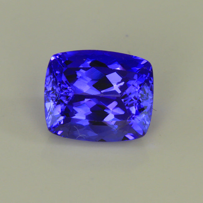 Fine vivid colored antique cushion cut tanzanite with Vs clarity. This fine gem has excellent brilliance and measures 8.3 x 7 x 5 millimeters.